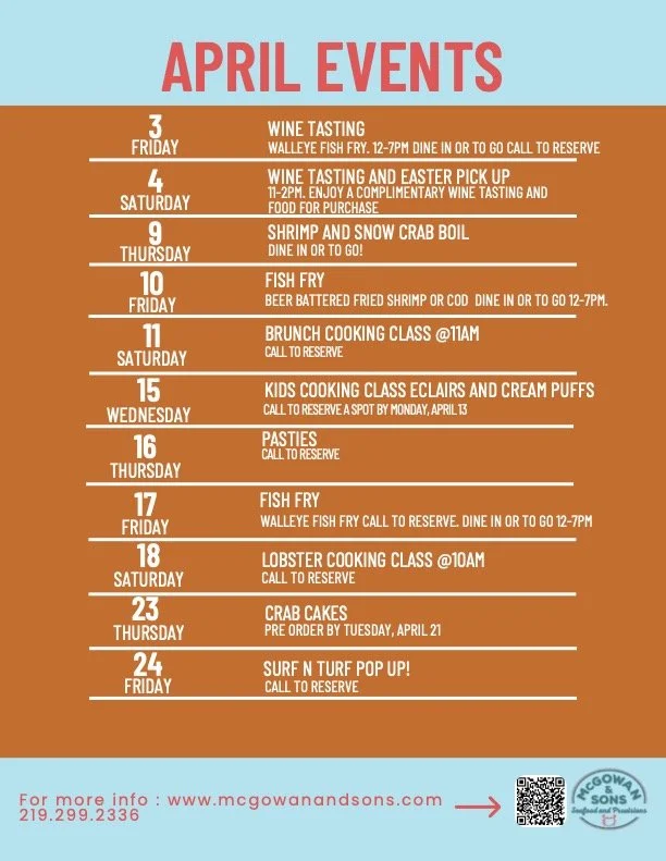 EVENTS There is never a dull moment at McGowan & Sons. Register for any event or promotion you see on our calendar! REGISTER Crab Cake Cooking Instructions